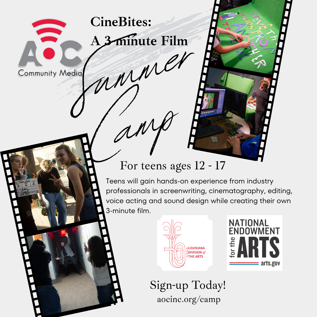 CineBites: 3-Minute Film Camp is supported by a grant from the Louisiana Division of the Arts, Office of Cultural Development, Department of Culture, Recreation and Tourism, in cooperation with the Louisiana State Arts Council, as administered by the Acadiana Center of the Arts.